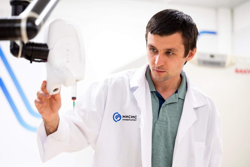 Роботическая система биопечати in situ непосредственно на тело пациента, разработанная учеными Университета МИСИС. В качестве биоматериала выступает гидрогель с добавлением клеток пациента, факторов роста и др. элементов.