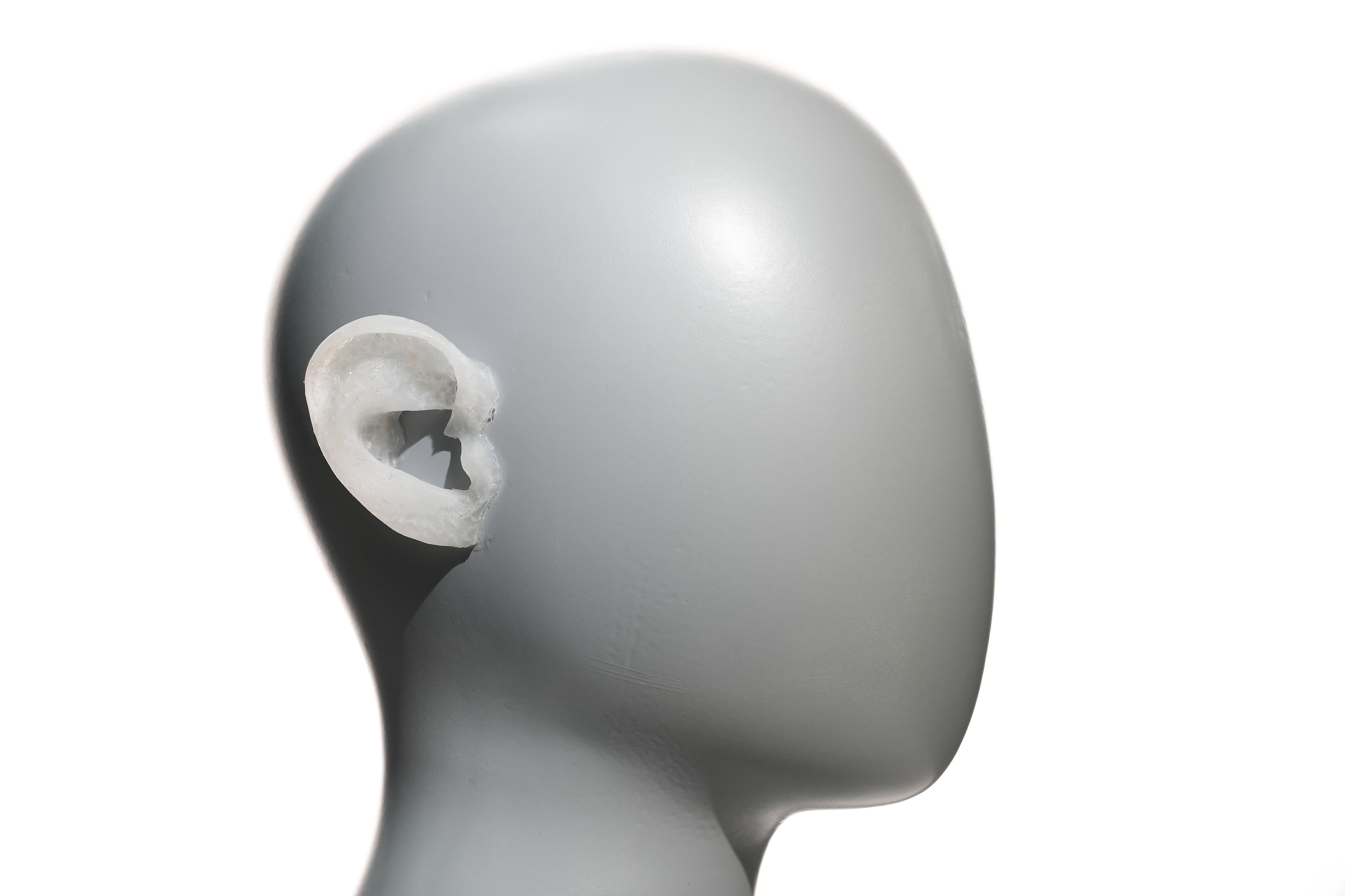 Протезы синтезируются из двух функциональных составляющих — пористого 3D-печатного каркаса и агарового гидрогеля в качестве наполнителя, сшитого феруловой кислотой. Гироидная структура полиуретанового каркаса способствует прорастанию сосудов, а интегрированные ребра жесткости обеспечивают сохранение формы под действием силы натяжения кожных лоскутов, что приближает имплантат к естественным ушным раковинам по биофизическим характеристикам. Использование аддитивных технологий также помогает решать задачу точного воссоздания формы и рельефа ушных раковин индивидуальных пациентов.