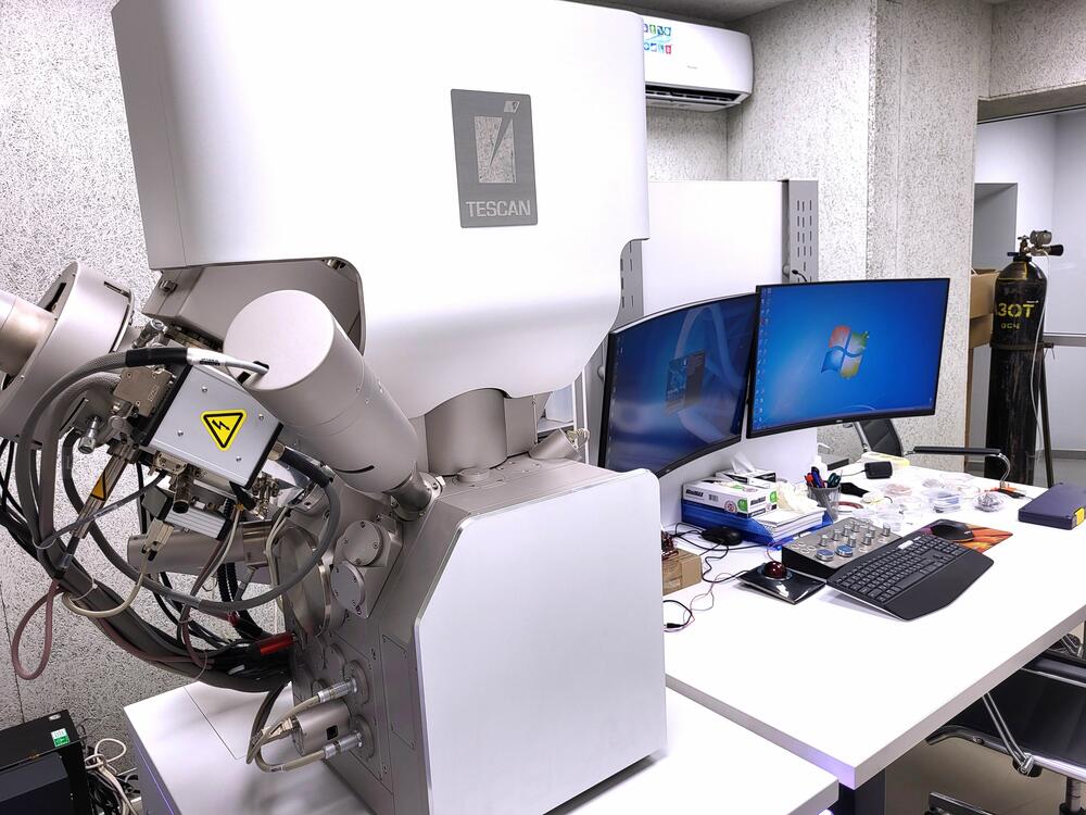 Сканирующий электронный микроскоп Tescan Amber GMU является двухлучевой системой с электронной и галлиевой ионной пушками (FIB-SEM), что позволяет получать изображения непосредственно при проведении различных процессов, например, травления и осаждения. Ключевым преимуществом данного микроскопа Tescan Amber GMU является сочетание интегрированных систем энергодисперсионного микроанализа (EDX) и дифракции обратно рассеянных электронов (EBSD) с FIB-SEM технологией, что позволяет получать мультимодальные трехмерные данные о структуре материала в рамках одного эксперимента. Важным отличием от аналогов, таких как, например, Tescan Amber GMU, является наличие режима низкого вакуума, который существенно упрощает работу с непроводящими материалами, исключая необходимость нанесения проводящего покрытия и связанные с этим искажения результатов. Особую ценность микроскопу придает комплектация специализированными модулями: ячейка для переноса и кратковременного хранения позволяет работать с быстро окисляющимися и чувствительными к воздуху материалами, миниатюрное испытательное устройство Dyben 500 N Testing Stage обеспечивает исследование взаимосвязи между микроструктурой и механическими свойствами, а температурный столик Linkam DSC600 открывает возможности для изучения фазовых переходов при прецизионном контроле температуры.